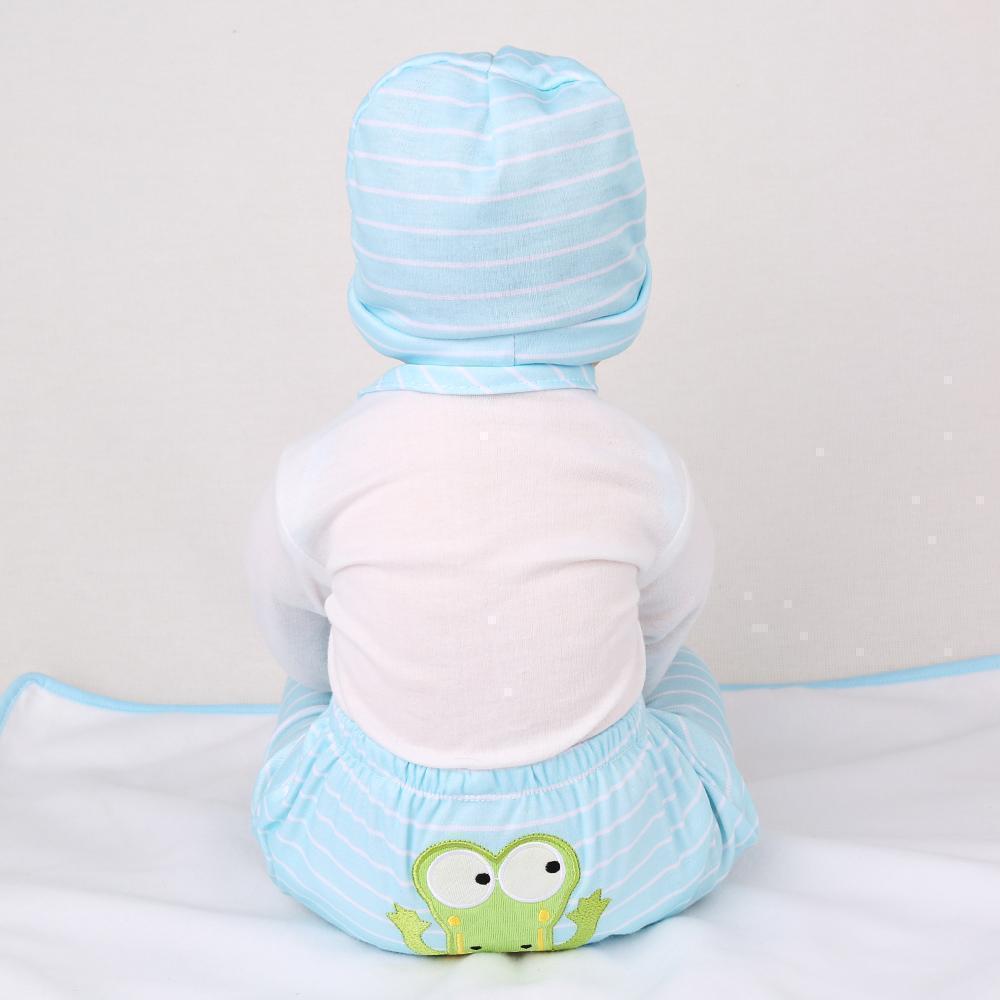 • Material: Baby doll's shoulder and body are cloth with internal filling PP cotton ,3/4 vinyl arms and 3/4 vinyl legs