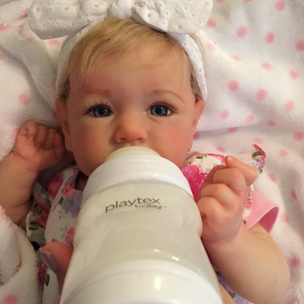 What better to inspire love and warmth than a lovely realistic doll? That's exactly what Saskia is for! This cute and lovely baby looks like she is babbling away with her mouth open; she has beautiful blue grey eyes and is full of curiosity about the world. Her skin is delicate and textured, and her face is blushing, as if her body is actually warm. Saskia's skin texture is hand-painted, and her hair and eyelashes are woven from high-quality hair. You can take her on a picnic, read her bedtime stories, or hold her as you go to sleep. Saskia, she's so pure and sweet.