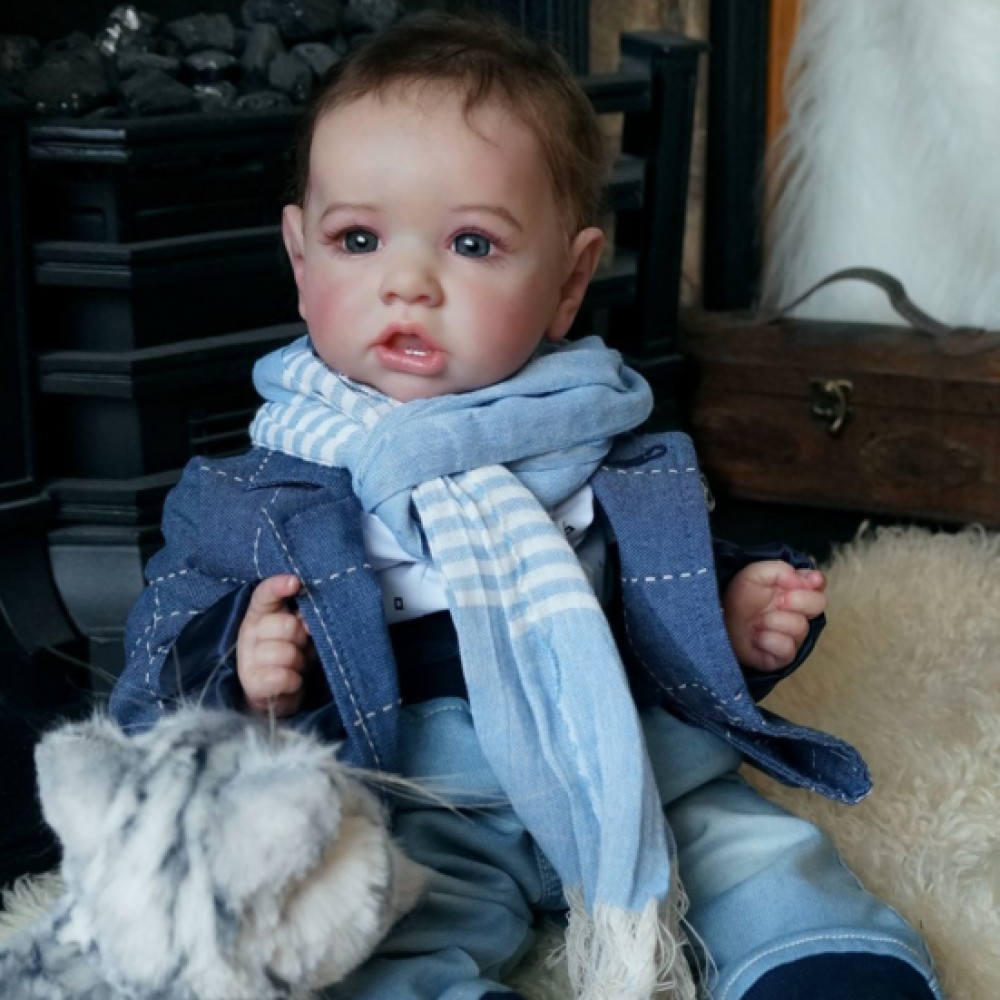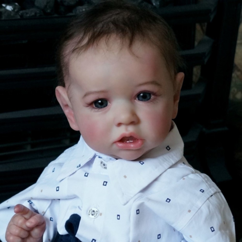 What better to inspire love and warmth than a lovely realistic doll? That's exactly what Saskia is for! This cute and lovely baby looks like she is babbling away with her mouth open; she has beautiful blue grey eyes and is full of curiosity about the world. Her skin is delicate and textured, and her face is blushing, as if her body is actually warm. Saskia's skin texture is hand-painted, and her hair and eyelashes are woven from high-quality hair. You can take her on a picnic, read her bedtime stories, or hold her as you go to sleep. Saskia, she's so pure and sweet.