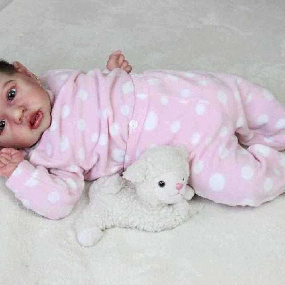 What better to inspire love and warmth than a lovely realistic doll? That's exactly what Saskia is for! This cute and lovely baby looks like she is babbling away with her mouth open; she has beautiful blue grey eyes and is full of curiosity about the world. Her skin is delicate and textured, and her face is blushing, as if her body is actually warm. Saskia's skin texture is hand-painted, and her hair and eyelashes are woven from high-quality hair. You can take her on a picnic, read her bedtime stories, or hold her as you go to sleep. Saskia, she's so pure and sweet.