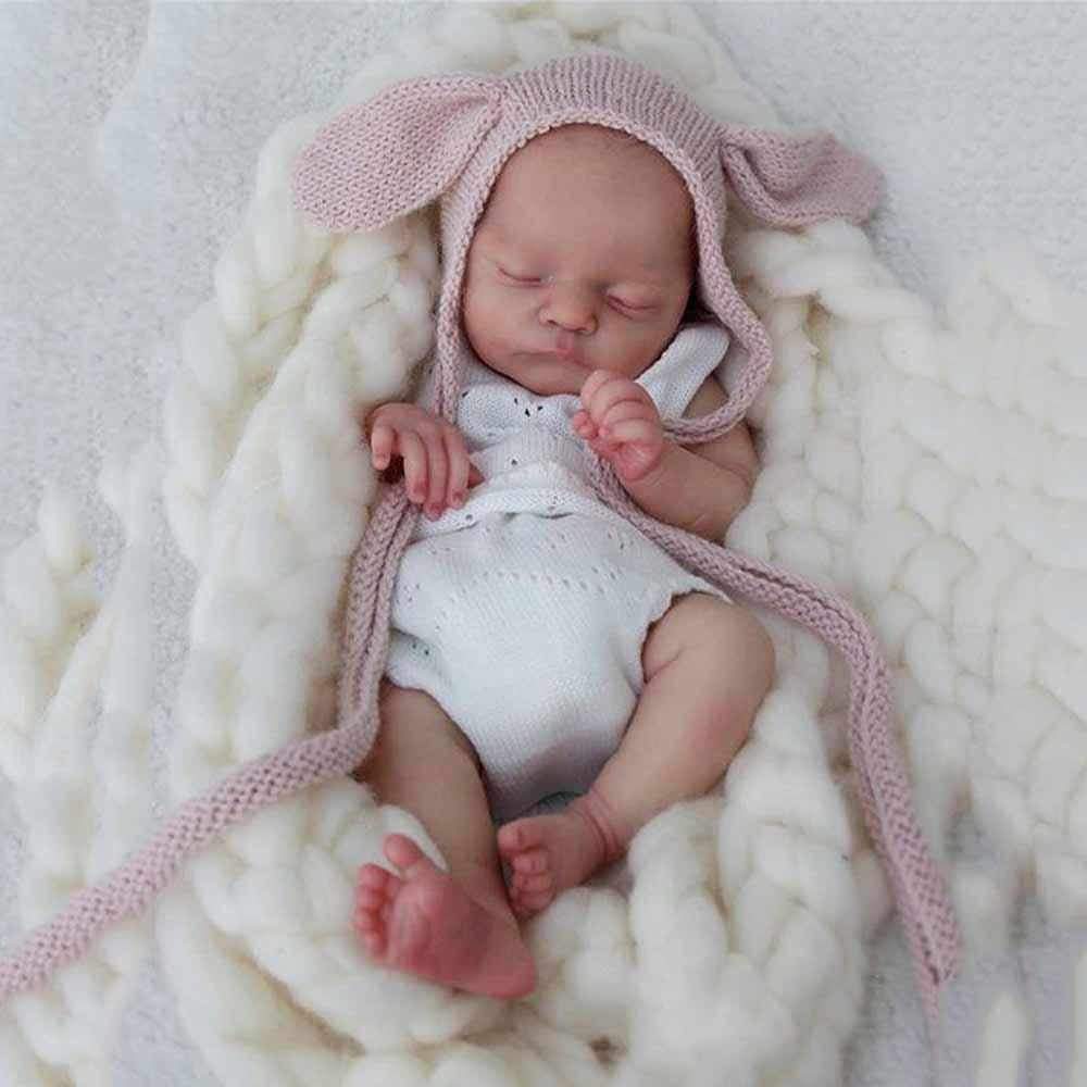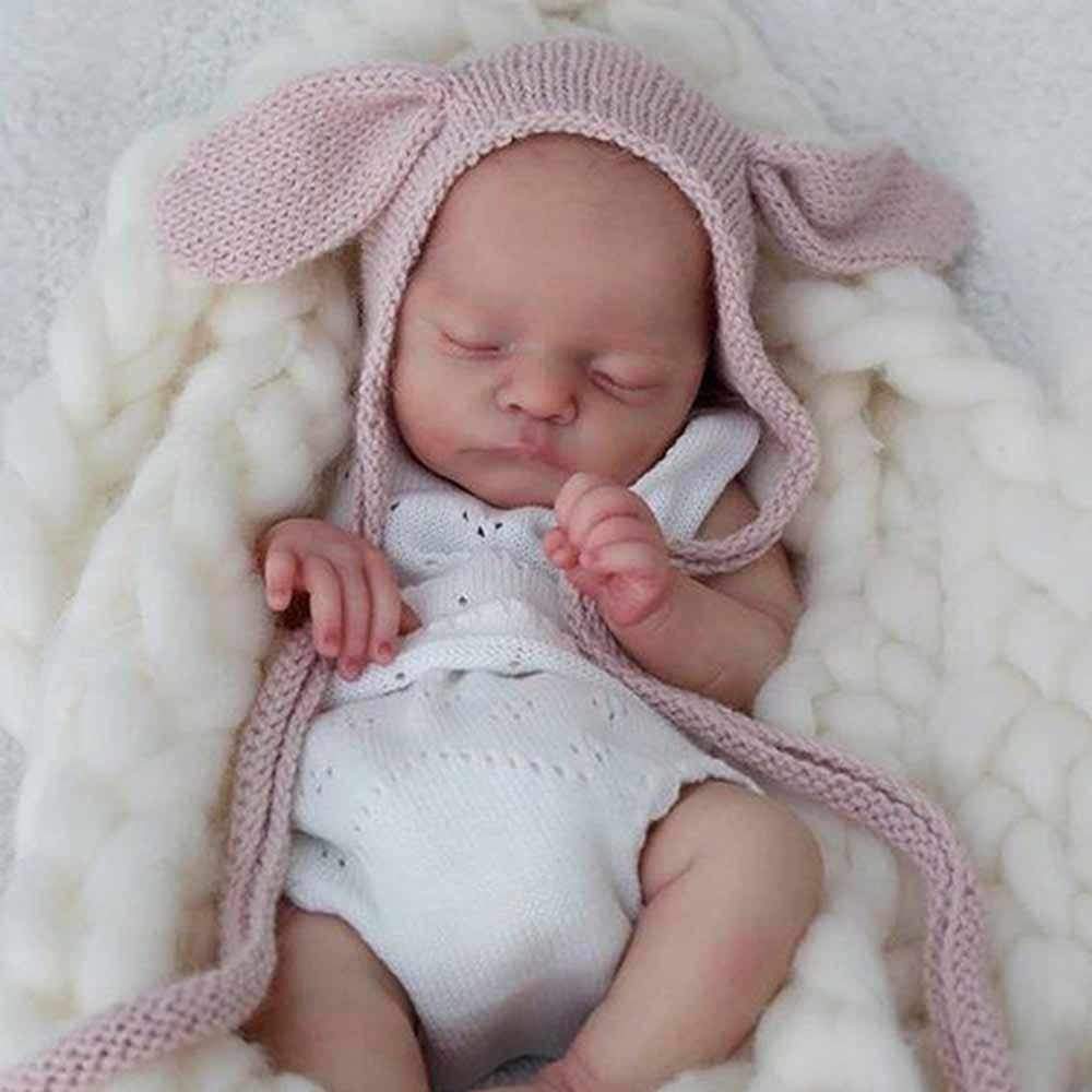 ❤ NEWBORN LOOKING - Baby doll's shoulder and body are cloth with internal filling PP cotton, 3/4 vinyl arms, and 3/4 vinyl legs, the body has no gender. The limbs are movable. Reborn baby doll can sit and lay down easily, but CANNOT stand, speak or be washed.