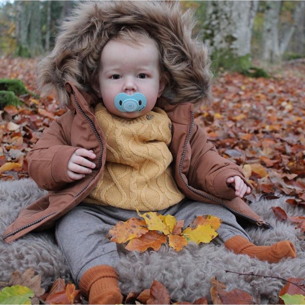 Liam is a little gentleman with a quiet personality, just like the boy next door. Everyone loves to make friends with him. After waking up from his nap, he loves to play with his toy cars all afternoon and he also likes to listen to fairy tales before having a good night's sleep! Liam's limbs are as soft and plump as a baby's, and the design of his legs allows him to sit, lie down and be in other positions. His cute and pearly lips are slightly open, which fits very well with the magnetic pacifier. In order to set off his deep eyes, we have only used a light paint on his eyebrows and have used a soft fiber material for his hair. For Liam, everything is gentle.