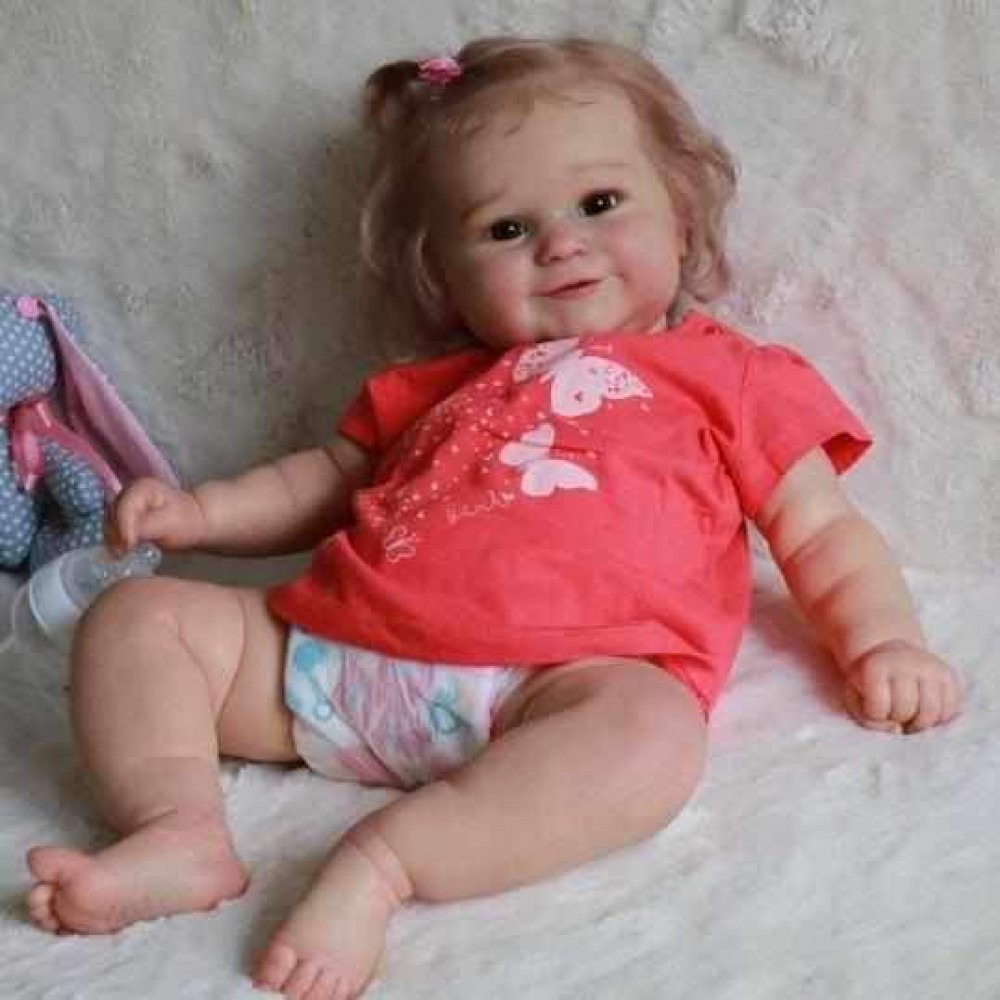 ?Reborn baby is 22'' from head to toe, with a soft touch of vinyl head,face and limbs,weighted body for a real baby feel.Baby Doll come with a set of clothes.