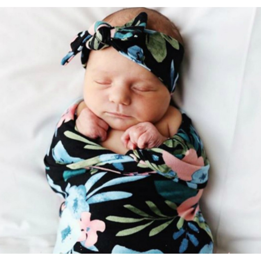 Adorable Baby Swaddle Blanket And Headband Set