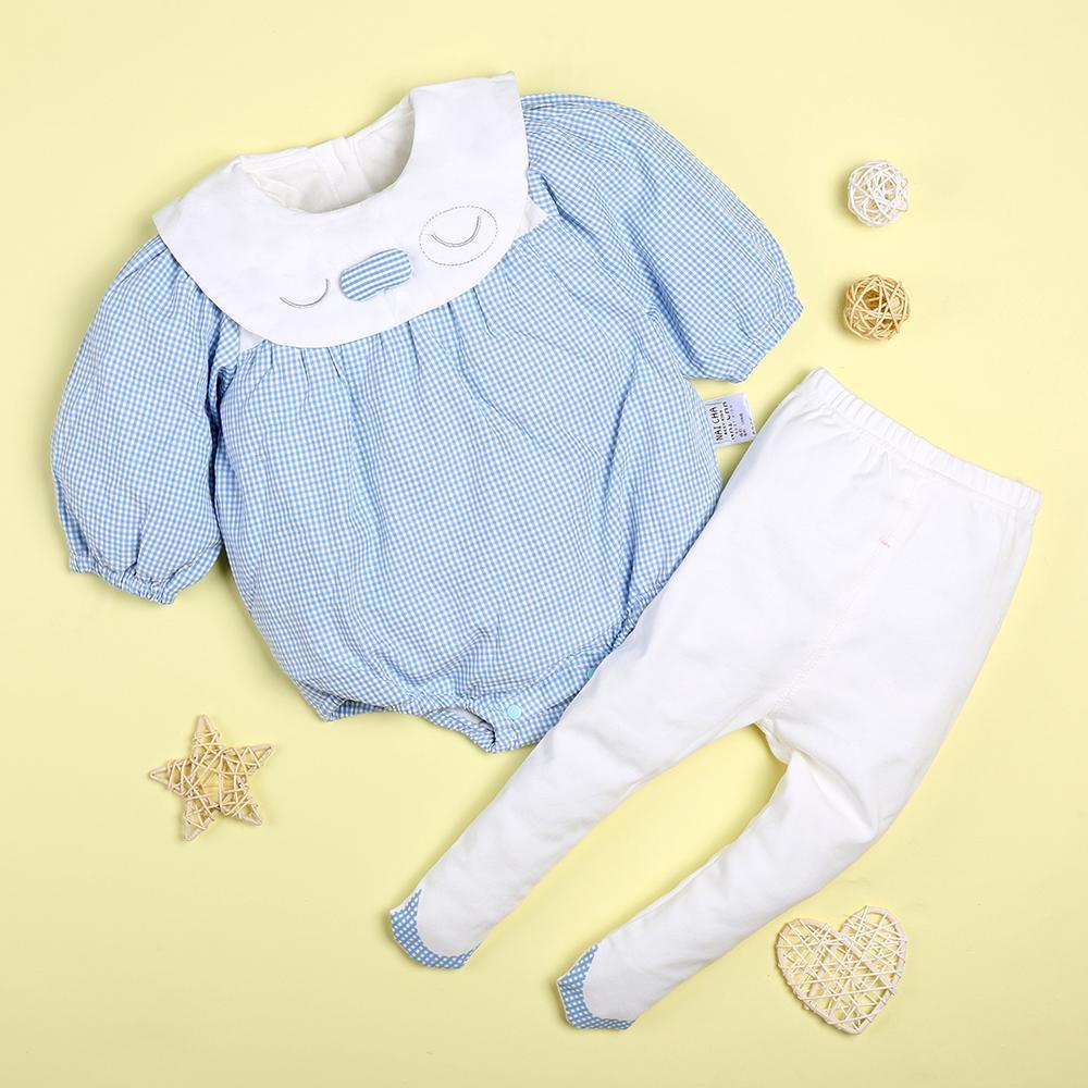 Blue Plaid Cute Top With White Pants Suit For 22'' Reborn Baby Doll Girl