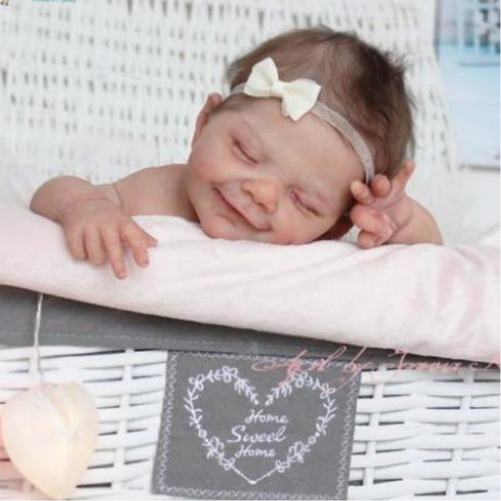 April falls asleep in the comfort of your arms. Her soft body is wrapped in soft and comfortable clothes, and she enjoys the sweet world of her dreams. She is absorbed in her beautiful dream, with a smile as sweet as a picture, and it's the manifestation of a child's first hopes for the world. April's body is soft, her legs are curled up, her nose and cheeks are a little blushed, we haven't forgotten these little details, and the smell of baby talcum powder around her makes everything more realistic. April, born in spring with sweet dreams, is our little smiling angel.