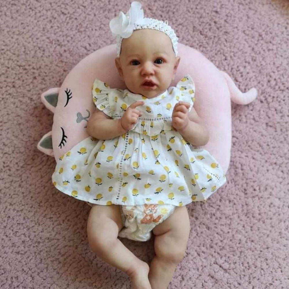 ❤ NEWBORN LOOKING - Cute face, sweet smile, long and curled eyelashes, the faint blush on her face, natural pale pink lips, and the hand-rooted hair are inspired by our artist who is dedicated to presenting high-quality dolls for people who really love dolls. Fine silicone vinyl full body, Material complies with safety specifications. can enter into the water take a shower.